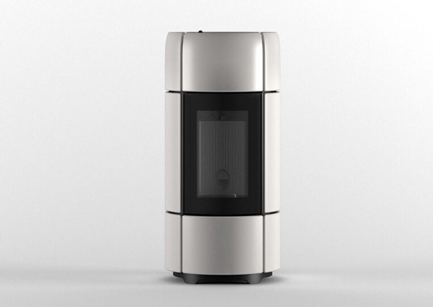 Poêle rond à granulés de bois en céramique, canalisable, d’une puissance de 10 kW.