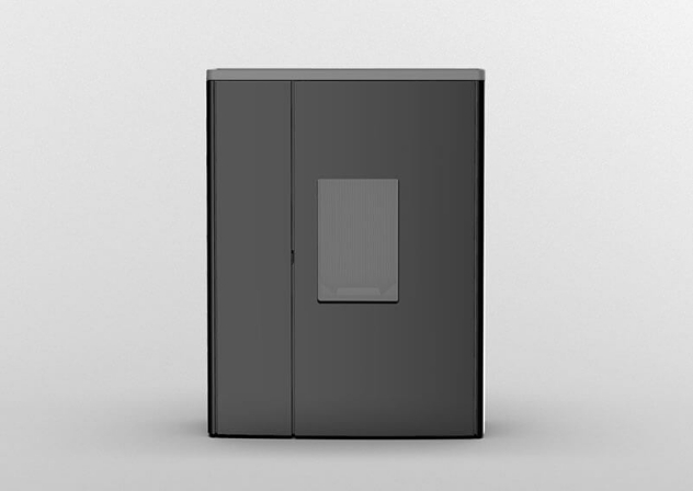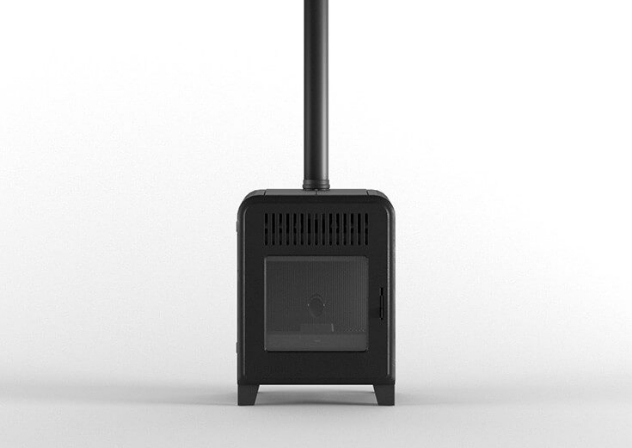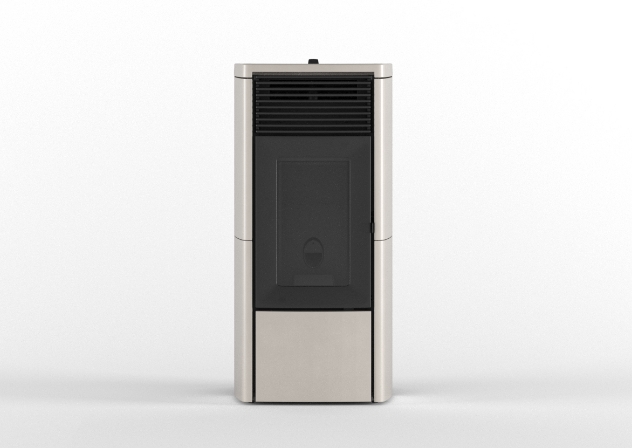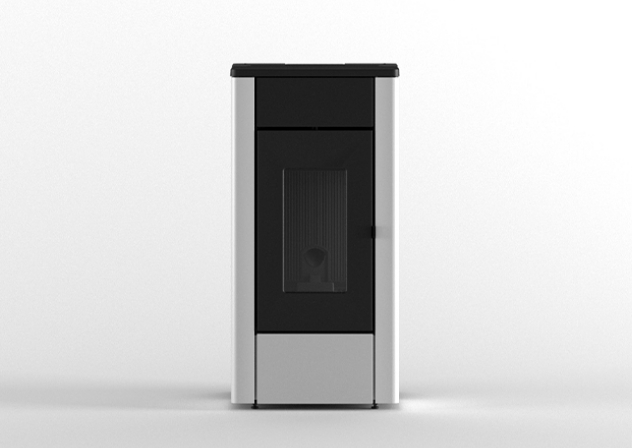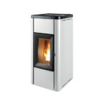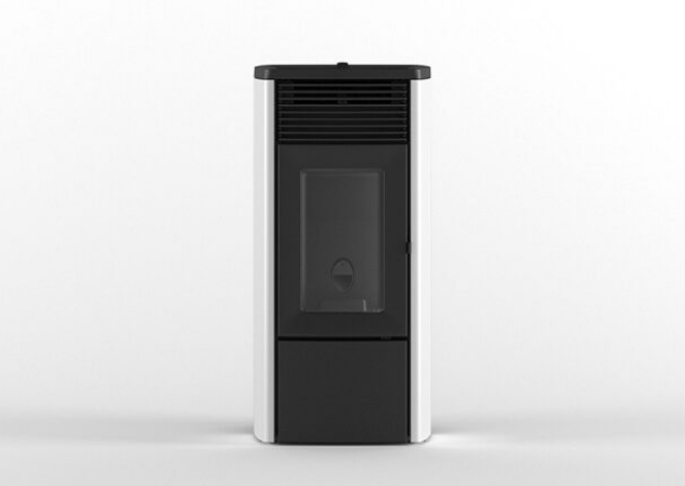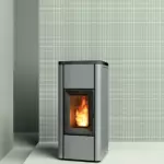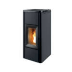 Poêle à granulés 6 kW, avec structure étanche et côtés en céramique, idéal pour les petits espaces ou les maisons bien isolées.