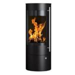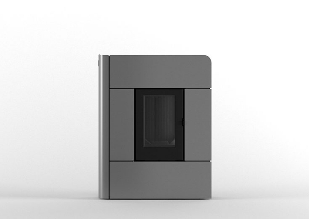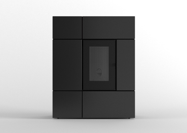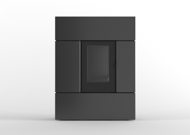 Poêle à granulés slim canalisable, disponible avec façade en pierre, acier ou céramique.