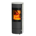 Poêle à granulés de bois en grès avec conduit, mince, au design essentiel et doté de la technologie Core.